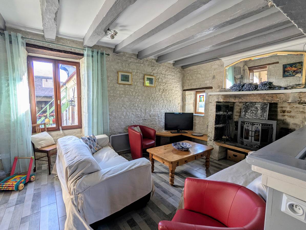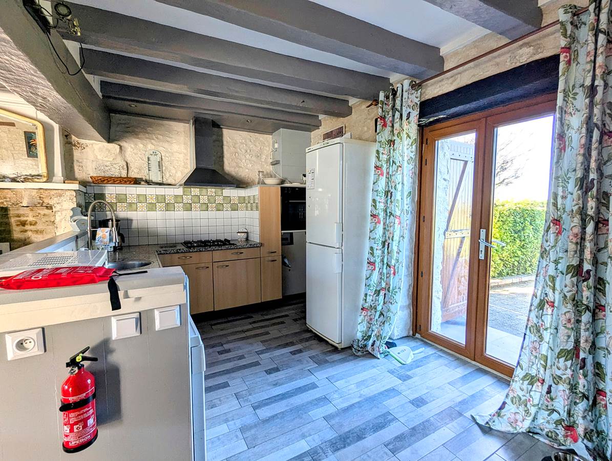 Depuis la terrasse avant, vous entrez dans un rez-de-chaussée lumineux composé d'un bel espace de vie avec cuisine ouverte. Parfaitement équipée, la cuisine vous permet de préparer de délicieux repas à savourer autour de la grande table familiale. Le coin salon, confortable et chaleureux, est l'endroit idéal pour se détendre après une journée de découvertes. L'ancienne cheminée a été conservée et équipée d'un poêle à bois, pour une ambiance douce et authentique.